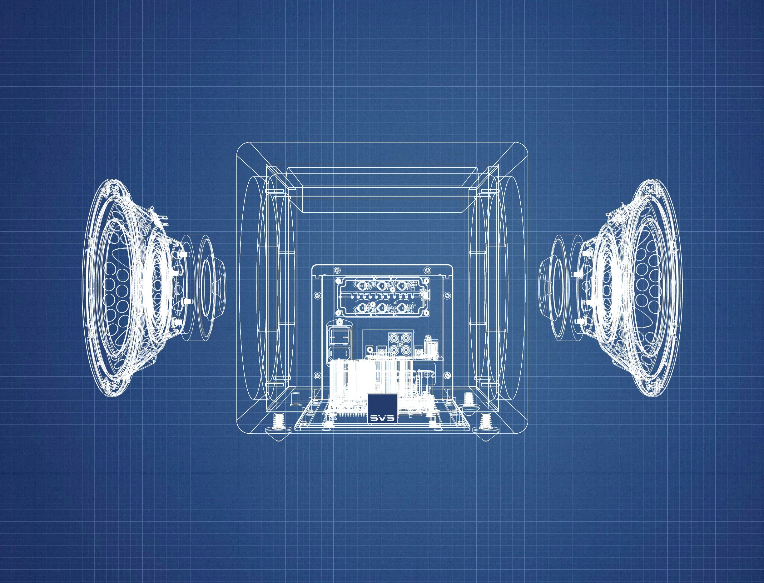 A driver is only potential and requires and equally potent amplifier. Extreme challenges existed for SVS engineers when designing an amplifier capable of powering fully active dual 8-inch drivers at reference levels in a micro-sized cabinet. How to maximize SPLs while maintaining accuracy? How to optimize on the potential of room gain? How to maintain proper cooling while achieving massive SPLs?