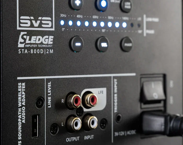 Rear-panel SVS Intelligent Control Interface (ICI) provides control options and connections for the subwoofer’s most critical functions.